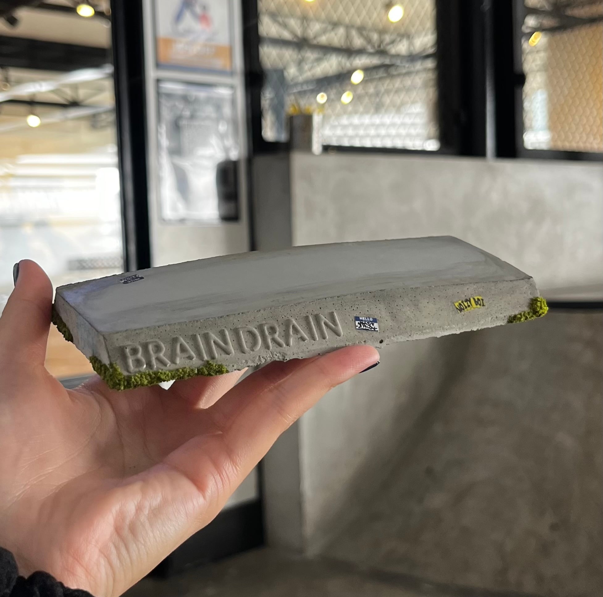 Made of concrete, the Slappy Curb features the original Brain Drain logo. It is wider than the regular Slappy Curb and can be used as a manual or to store accessories.